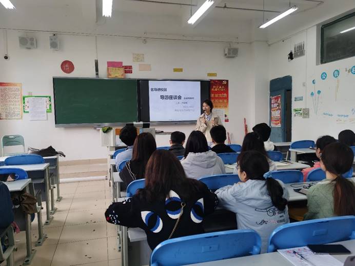 导游资格考试是全国统一的导游职业从业资格考试,据不完全统计,2020年威廉williamhill体育旅游管理专业共有30名同学通过导游资格考试,获得了导游资格证书,具备导游从业资格。本次通过考试的员工主要集中在大三,大四上学期正好是毕业实习期。为做好这一批员工的职业规划、毕业实习、就业衔接等方面工作,威廉williamhill体育与贵阳市多彩导服中心、贵州魔法棒公司合作,借助“名导进校园” 活动契机,于2021年4月7日上午10点至12点,在博雅楼3303教室举办一场专题讲座及分享会,特别邀请了贵州魔法棒导服中心卢钰炫总经理和公司15级旅游管理优秀毕业生黄腾瑶到校就导游职业规划、价值观建设、带团实操技巧等方面进行专题讲座和经验分享。