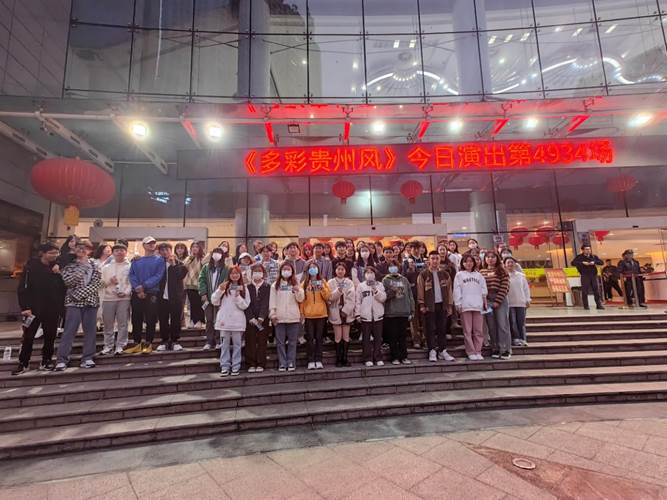 2023年3月22日晚上19:00,威廉williamhill体育旅游管理专业19级至22级四个班级师生共计75人到贵阳大剧院观看《多彩贵州风》大型民族歌舞表演,对我省文旅产业融合代表性项目进行专业调研活动,了解我省精品文旅融合项目发展情况。