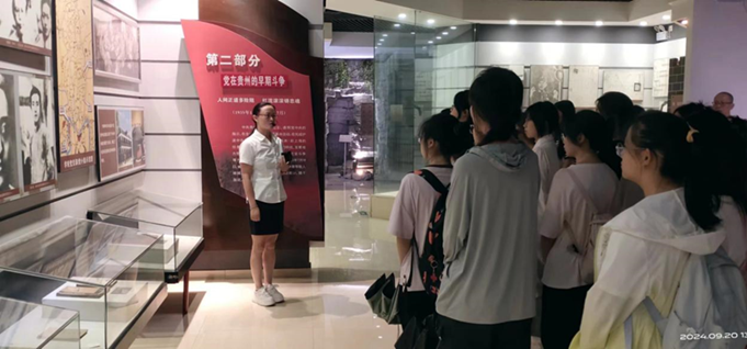 中共贵州省工委旧址,原称“高家花园”,是中央红军长征途中,中共中央批准建立的唯一的省一级地下党的领导机构。这里曾是中共地下党及进步人士的秘密居住和工作场所,同时也是省工委集会和部署工作的秘密机关。在专业讲解员的引导下,我们参观了省工委旧址的各个展厅。展厅通过丰富的历史照片和文物,全面展示了贵州省工委从党的创立时期到解放战争时期的发展历程。参观过程中,同学们认真聆听讲解,深刻感受到了中国共产党在贵州地区的奋斗历程和革命精神。