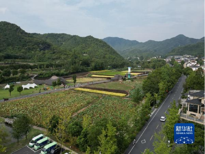 2022年9月27日,游客在浙江余村参观(无人机照片)。新华社记者 崔力 摄