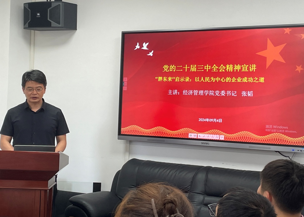 通过“胖东来”的案例,师生们深刻认识到坚持以人民为中心才能实现可持续发展。张韬书记呼吁师生们深刻领会二十届三中全会精神,教师要将其融入教学,培养员工的改革创新意识和实践能力;员工要努力学习专业知识,积极投身社会实践,为未来参与经济管理工作、推动社会经济发展做好准备。
